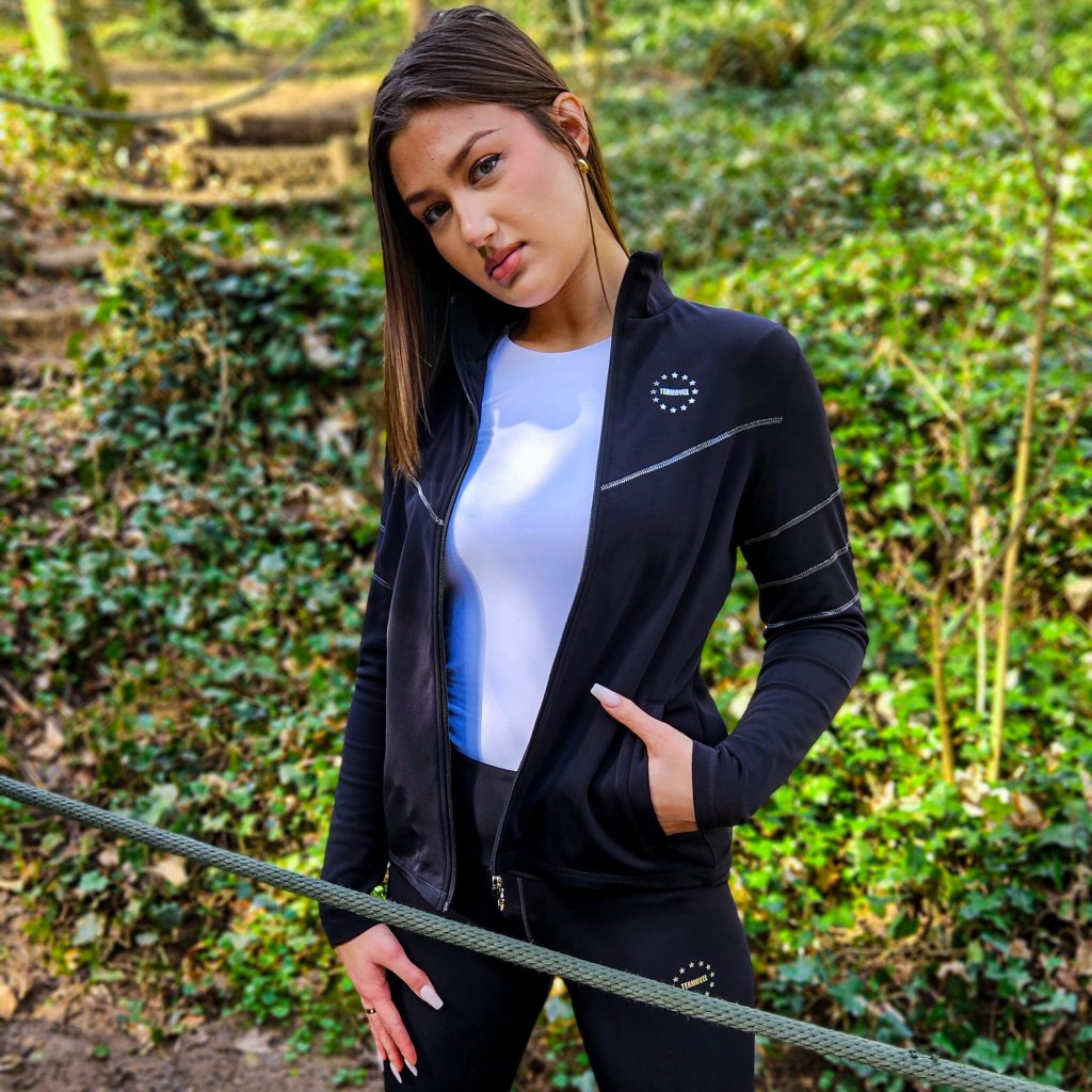 Funkční mikina se zapínáním na zip v černé barvě se stříbrnými detaily. Použitý materiál je příjemný, s počesem na vnitřní straně. Mikinu můžete nosit jako druhou vrstvu nebo jako vnější vrstvu do mírně chladného počasí.