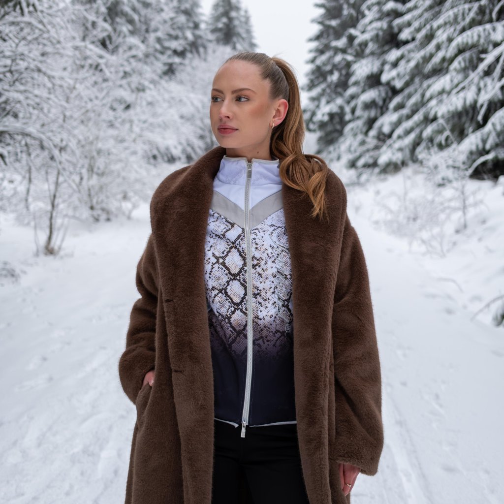 Staňte se módní ikonou na svahu i při posezení u svařáku. S dámskou mikinou SNAKE SILVER budete nepřehlédnutelná. Atraktivní potisk hadí kůže spolu s fialovými a stříbrnými detaily vám dodají styl. Mikina je velmi příjemná na nošení díky jemnému počesu z vnitřní strany. Lze ji využít celoročně, na vycházky s přáteli, do města, nebo v zimní sezoně. Skvěle se dá zkombinovat také s rolákem a kalhotami SNAKE SILVER ve stejném designu.