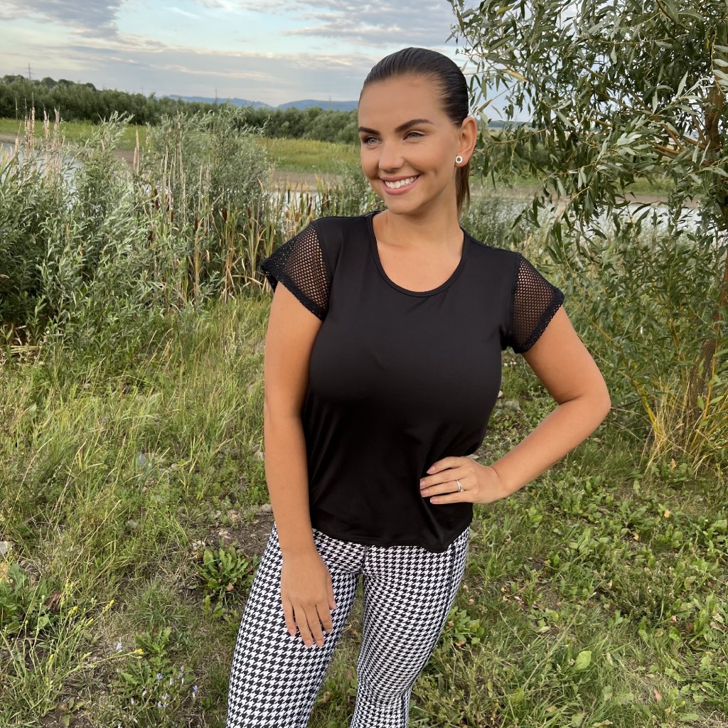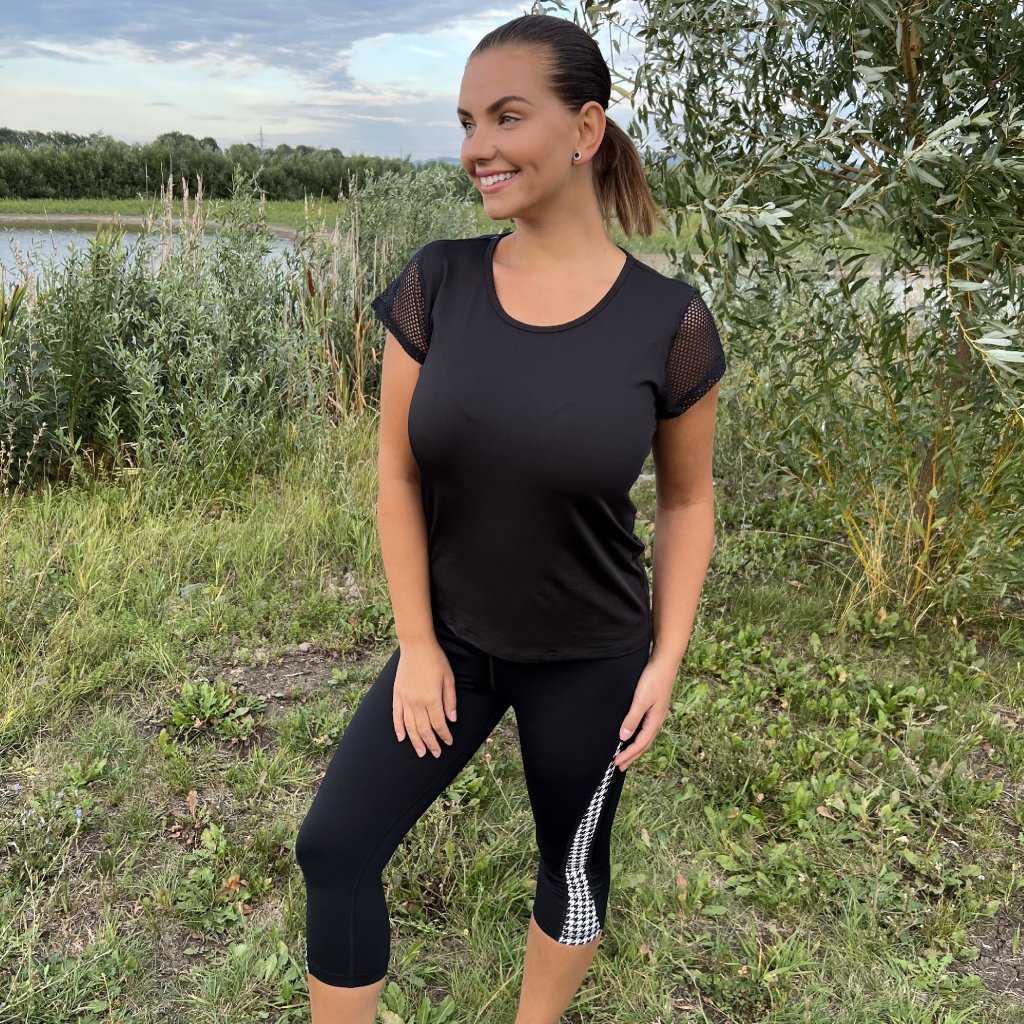 Dámské tričko v černé barvě zhotovené z funkčního materiálu. Ideální na běh, jízdu na kole, do posilovny nebo na fitness cvičení.