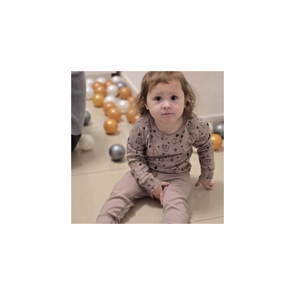 Dětský béžový set s potiskem je díky použitému materiálu velmi příjemný a hřejivý. Může být použitý jako samostatná první vrstva nebo jako druhá vrstva. Vhodné na sportovní i volnočasové aktivity v chladnějším počasí.