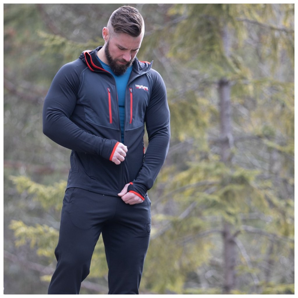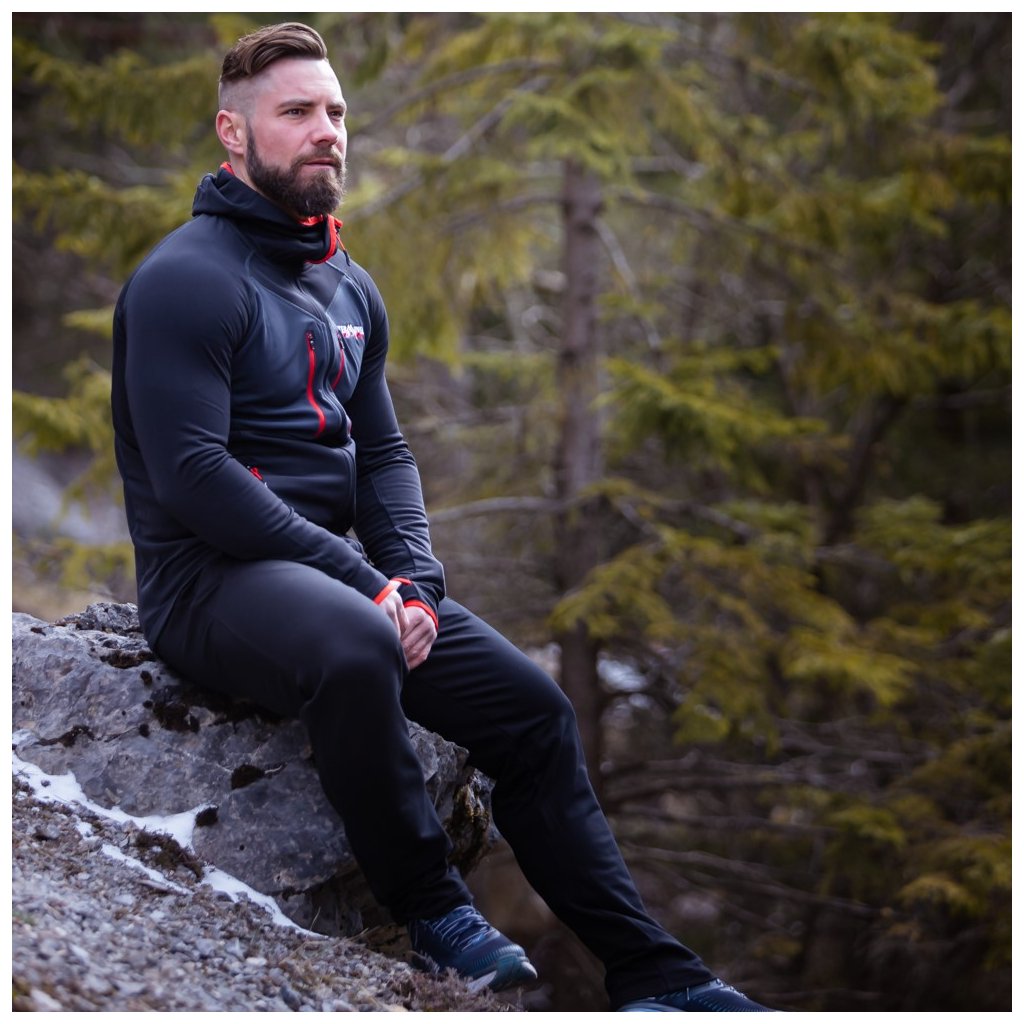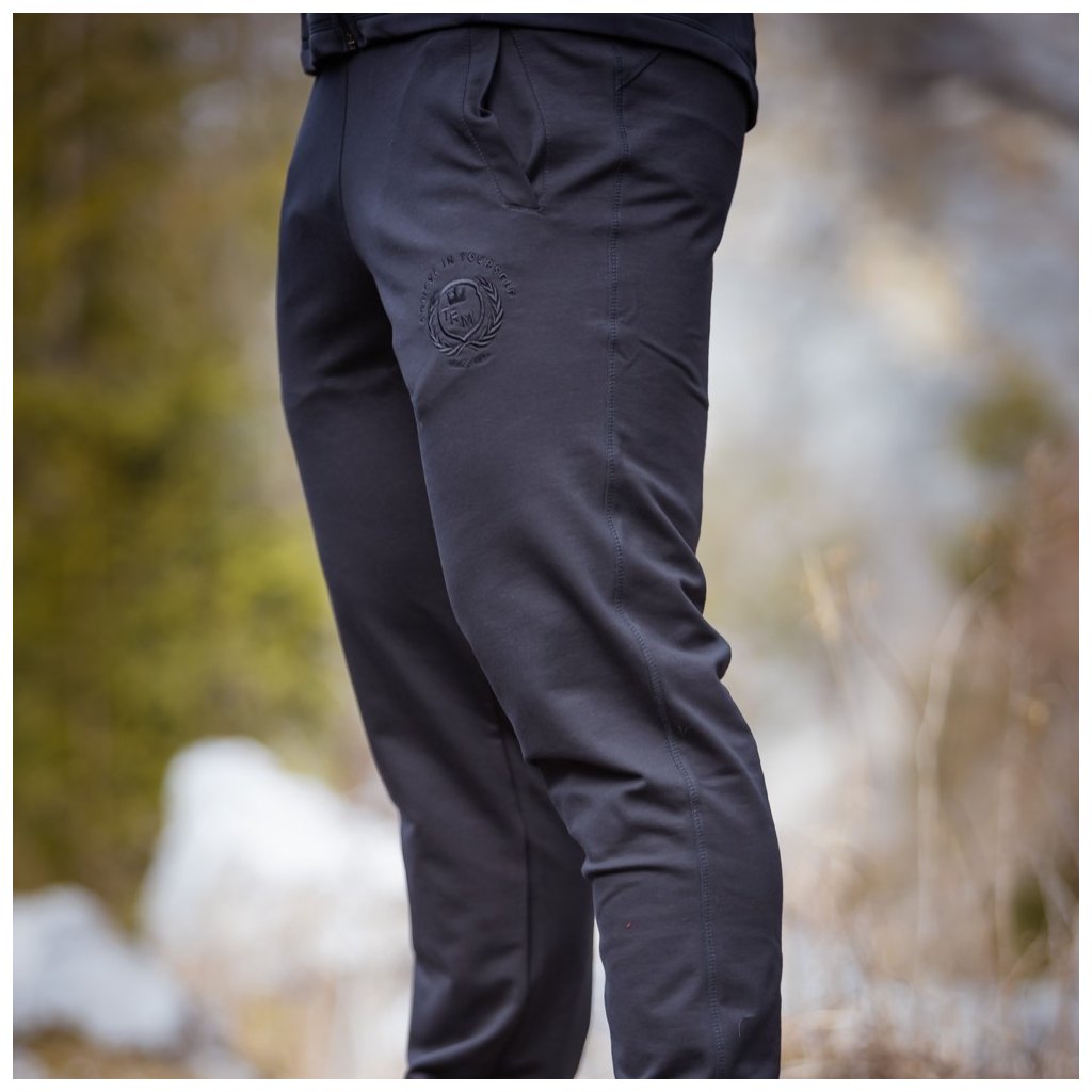 Pánské teplákové kalhoty pohodlného střihu s bočními kapsami. Mají elastický pas, dolní část nohavic je mírně zúžená.