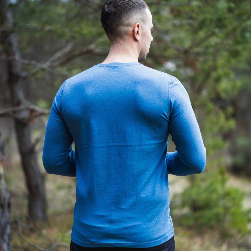 Pánské triko s dlouhým rukávem je ušito z jemného pružného bambusového materiálu. Bambus má přirozené antibakteriální vlastnosti, které pomáhají redukovat zápach, což oceníš zejména při celodenním nošení. Tento materiál vám přináší pocit luxusu a pohodlí, zároveň je přátelský k přírodě! Bambusový úplet je zároveň antibakteriální, hypoalergenní a ekologicky udržitelný, neboť bambus jako rychle rostoucí rostlina nepotřebuje chemikálie ke svému růstu.
