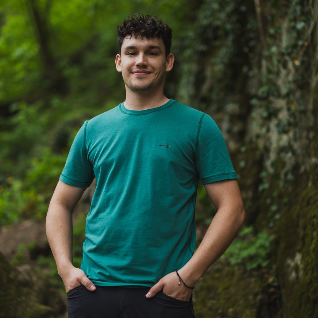 Pánské triko s krátkým rukávem je ušito z jemného pružného bambusového materiálu. Bambus má přirozené antibakteriální vlastnosti, které pomáhají redukovat zápach, což oceníš zejména při celodenním nošení. Tento materiál vám přináší pocit luxusu a pohodlí, zároveň je přátelský k přírodě! Bambusový úplet je zároveň antibakteriální, hypoalergenní a ekologicky udržitelný, neboť bambus jako rychle rostoucí rostlina nepotřebuje chemikálie ke svému růstu. Tento materiál je skvělou volbou pro pohodlné a zdravé oblečení. Tričko má rovný střih a je šité plochými švy. Vhodné při aktivním sportování i pro volnočasové aktivity.