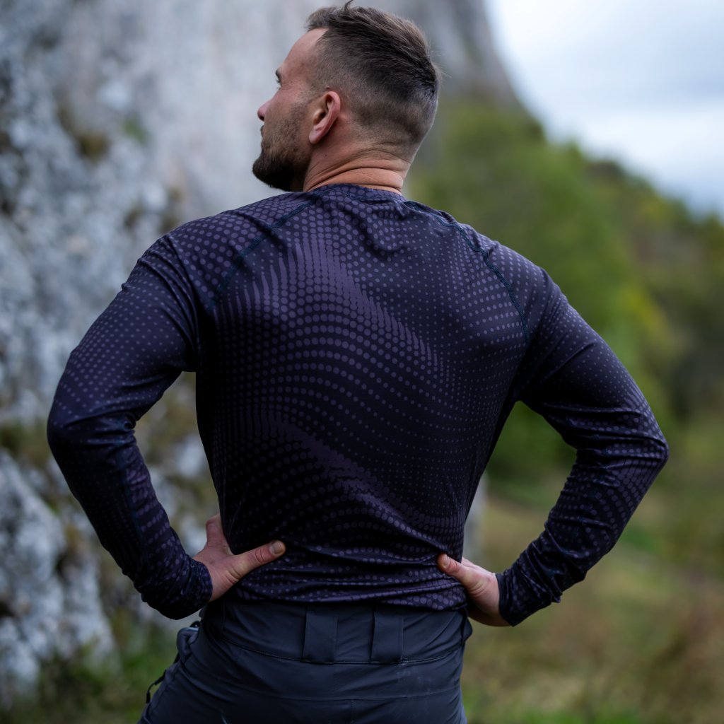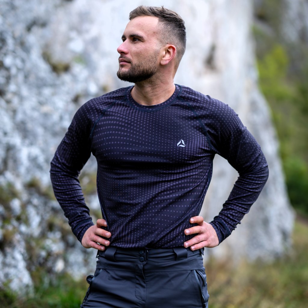 Pánské tričko s originálním potiskem je díky použitému materiálu velmi příjemné a hřejivé. Přiléhavý anatomický střih a prodloužený zadní díl zaručují komfort při nošení. Tričko můžete nosit jako druhou vrstvu, nebo jako samostatnou první vrstvu. Je vhodné na sportovní a volnočasové aktivity v chladném počasí.