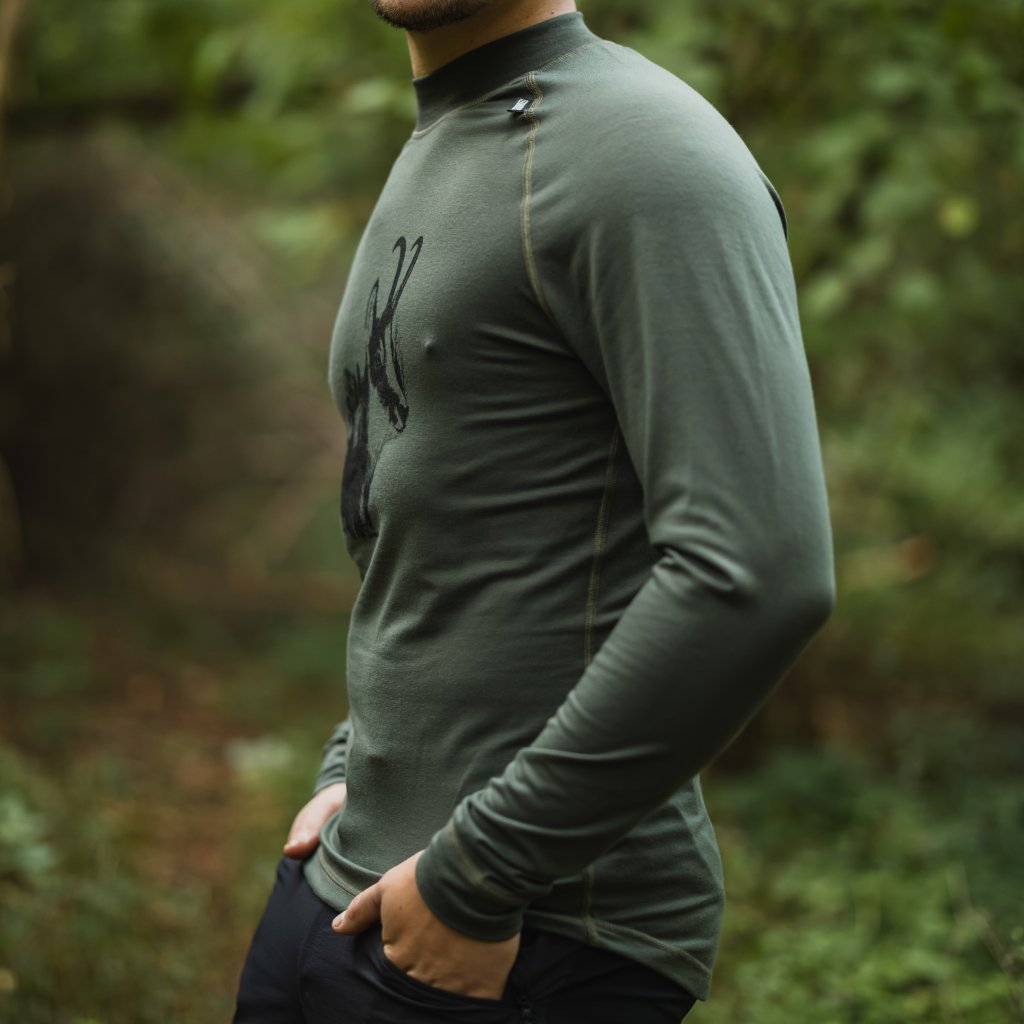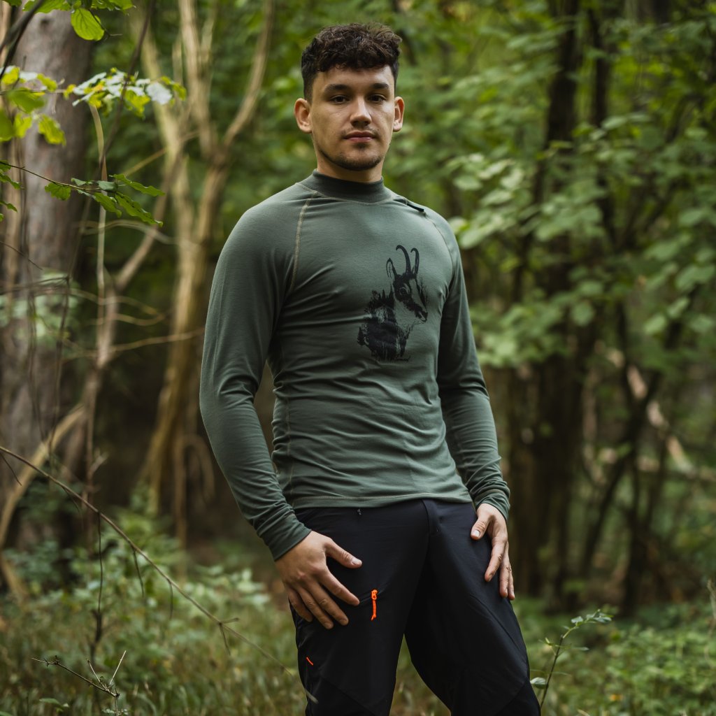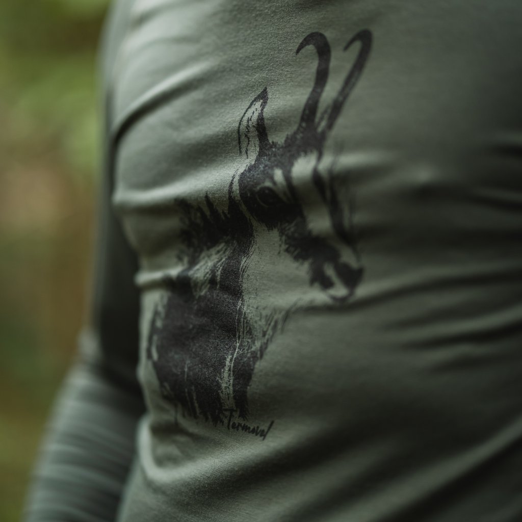 Pánské triko s potiskem kamzíka je díky použitému materiálu velmi příjemné a hřejivé. Vnitřní strana materiálu má jemný počes. Použití jako samostatná první vrstva, nebo jako druhá vrstva. Přiléhavý, anatomický střih s plochými švy a prodloužený zadní díl zaručují komfort při nošení. Vhodné pro sportovní i volnočasové aktivity v chladnějším počasí.