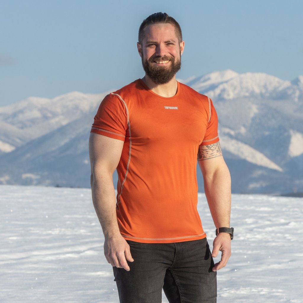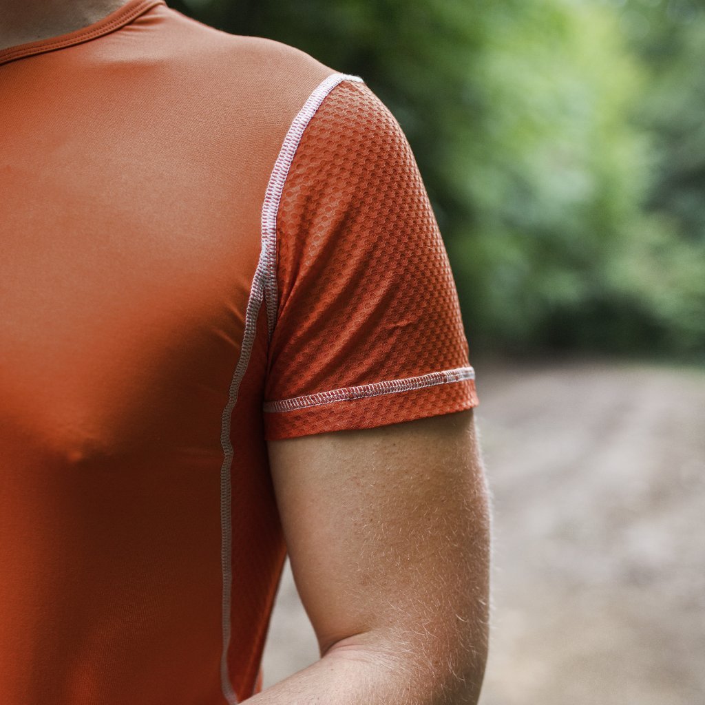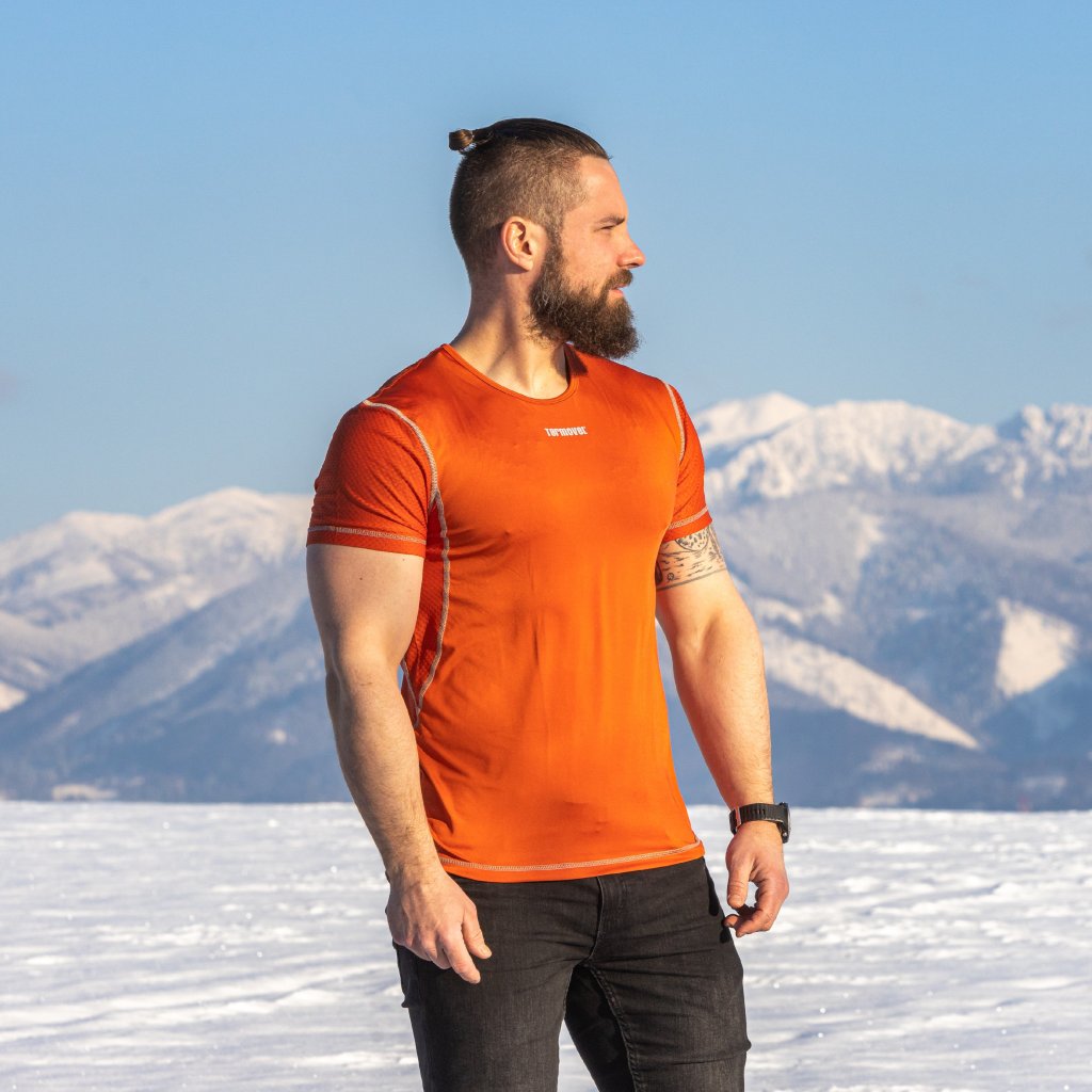 Pánské tričko s krátkým rukávem v atraktivní cihlové barvě. Díky funkčnímu materiálu s vysokým podílem polyesteru se tričko nemačká a napomáhá rychlému odvodu potu z těla. Pánské tričko QUADRE SHORT je ideální jako první vrstva pro cyklisty, turisty i ostatní aktivní sportovce.