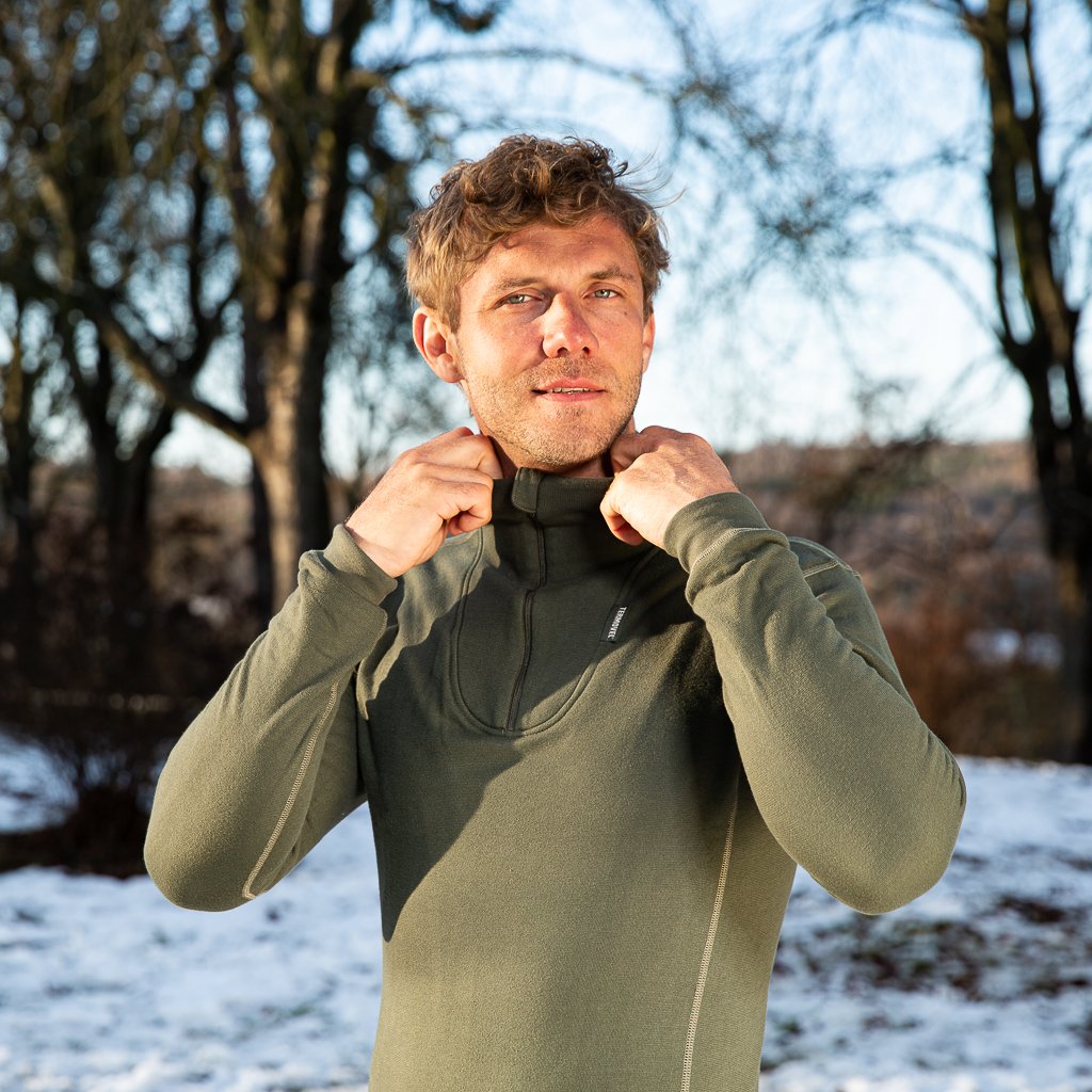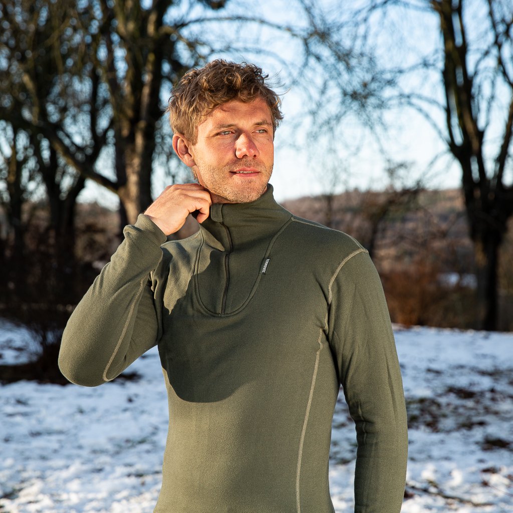 Pánský rolák pro chladné dny a noci je vyrobený ze směsi vláken bavlny a polypropylenu v poměru 50:50, což napomáhá k odvodu potu a vlhkosti z těla a tím udržuje optimální mikroklima. Rolák je dobře propracovaný a pro jednodušší oblékaní je u krku krátký zip. Nechybí krytka zipu proti oděru brady. Rolák je vhodný jako druhá vrstva oblečení, ale díky jemné vnitřní straně se může použít i jako první vrstva.