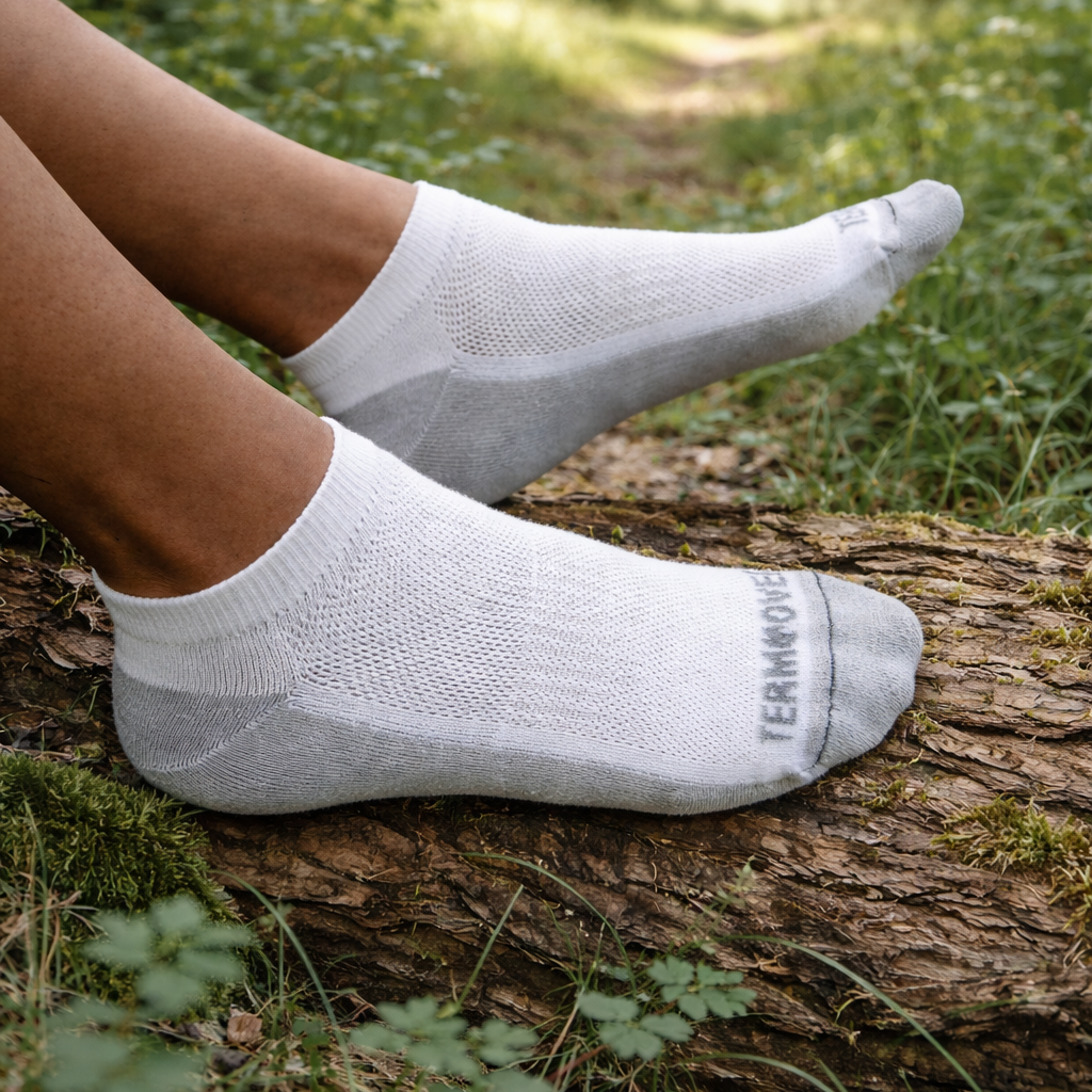 Tyto lehké kotníkové ponožky jsou ideálním společníkem pro sport i každodenní nošení. Díky 70% podílu bavlny jsou mimořádně jemné, zatímco speciální vlákno s ionty stříbra poskytuje trvalou antibakteriální ochranu proti zápachu a plísním. Specifická síťovaná struktura na vrchní straně zaručuje dokonalé odvětrávání a udržuje chodidla v suchu i při vysoké zátěži. Praktická šedá spodní část efektivně maskuje běžné znečištění a díky příměsi elastanu ponožka pevně drží na noze bez nepříjemného shrnování.