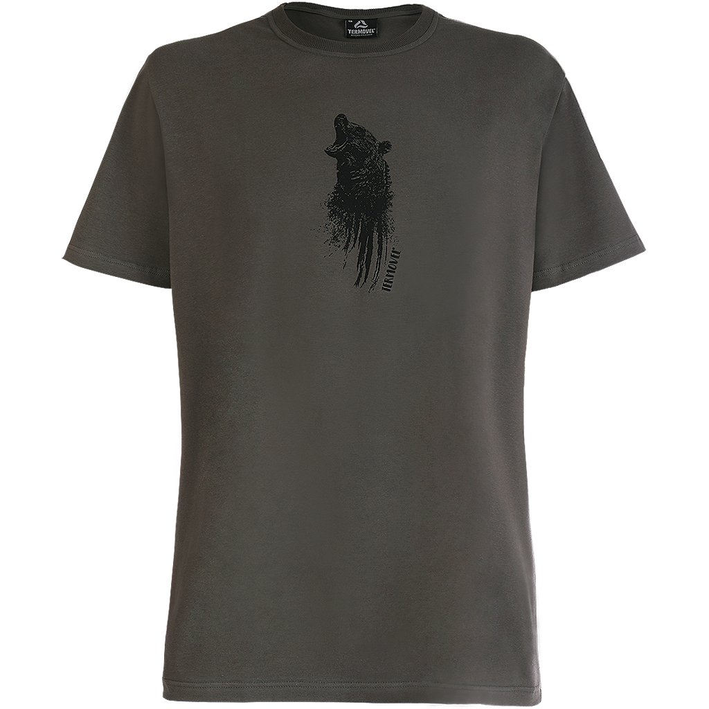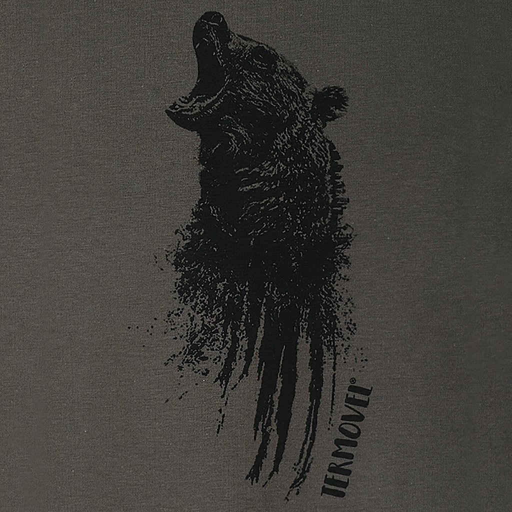 Pánské tričko s krátkým rukávem v khaki barvě, s potiskem medvěda na hrudi, vyrobené z kvalitní pevné bavlny.